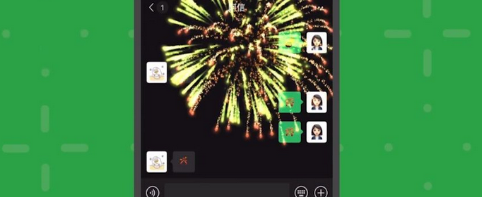 微信之夜上,张小龙讲述了微信里可以互扔“炸弹”的设想。这一想法在8.0版本中实现。8.0版本上线了一系列新版表情,其中最为亮点的是“炸弹”和“烟花”。向对方扔“炸弹”,会有爆炸的视觉效果,屏幕还会跟着震动。发送“烟花”,则会呈现出全屏烟花的效果。此外,还有一些新的小黄脸表情上线。