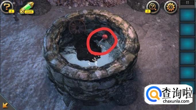 给手枪装上子弹后,用手枪将悬崖上的缆车吊钩打落到水井中,将水中的把手捡起。