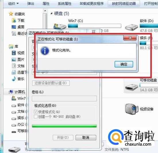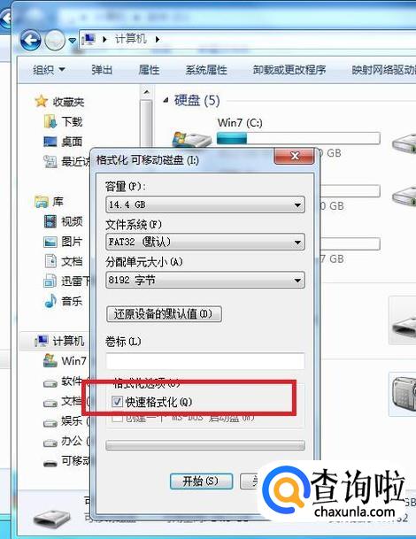 在”快速格式化“前面打勾,选择“开始”对U盘进行格式化处理。