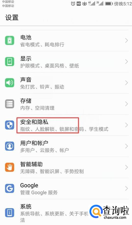 进入设置之后,我们点击安全和隐私;