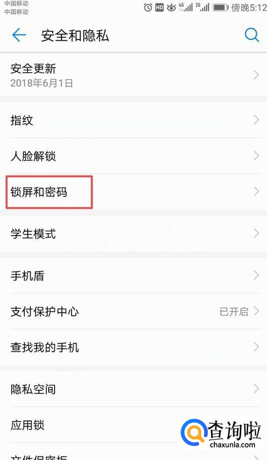 然后我们点击锁屏和密码;