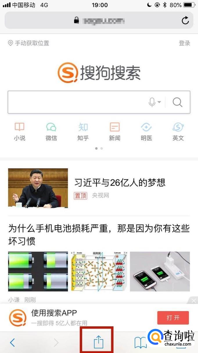 接着点击网址下方的分享图标,如下图所示。