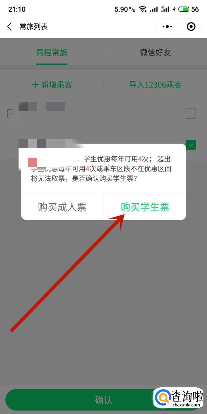 在出现的弹窗内点击“购买学生票”,如图所示。