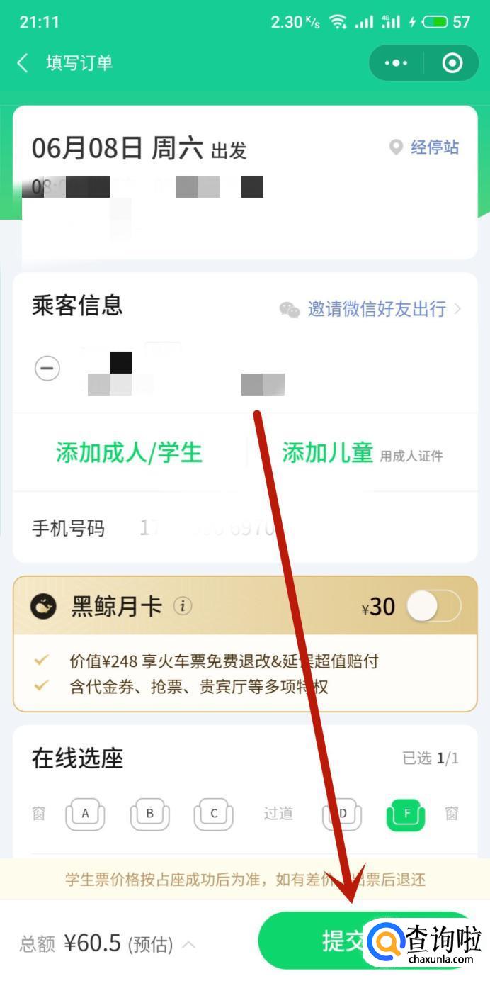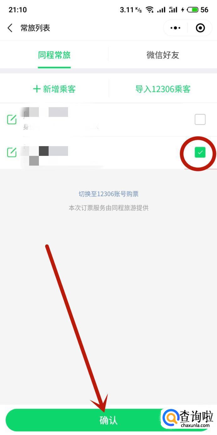 进入之后,勾选乘车人,点击“确定”,如图所示。