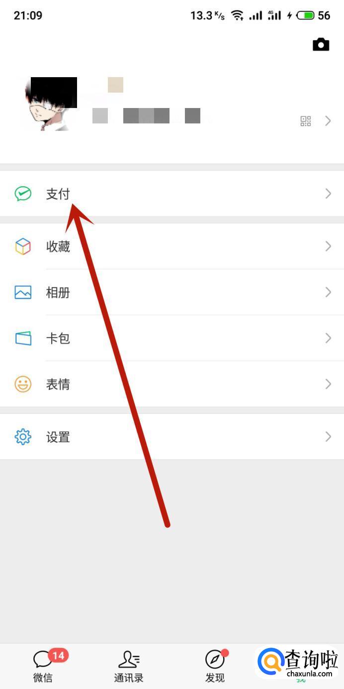 进入微信,在“我”页面点击“支付”,如图所示。