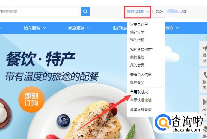 进入之后,在“我的12306”位置选择“常用联系人”,如图所示。