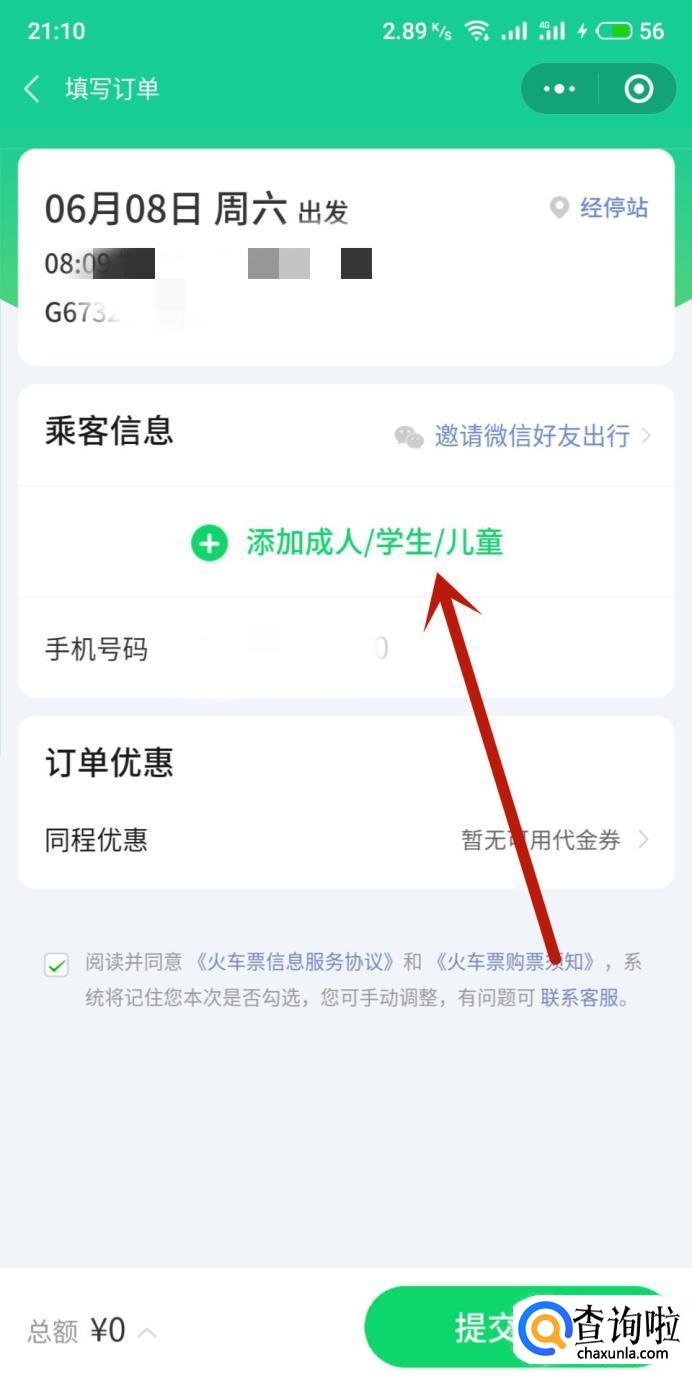 购买高铁学生票,需要在铁路12306官网绑定学生信息,在购买高铁票的时候选择学生票即可。以下用安卓手机的微信(V7.0.4)操作演示一下。