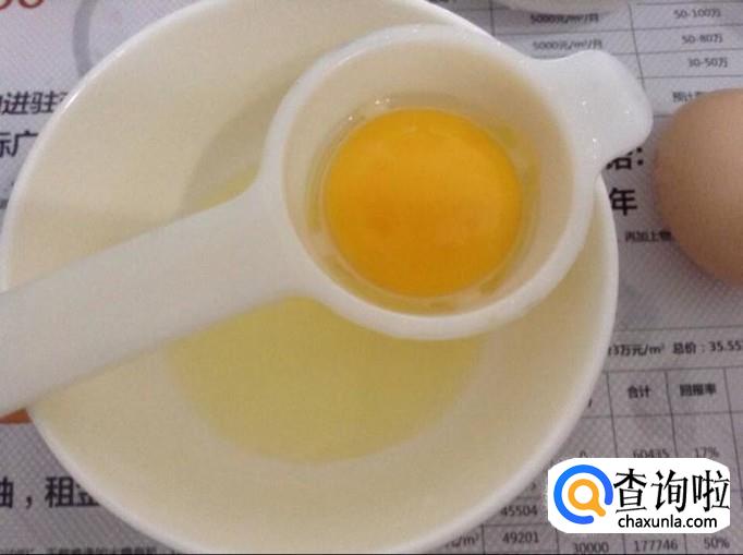 准备好一个鸡蛋,蛋白和蛋黄分开装,注意蛋黄一定要完整。