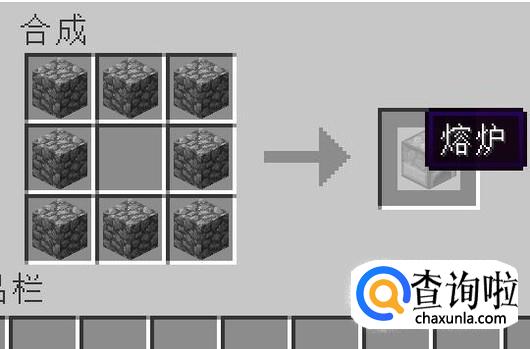 将圆石放在工作台上面,围成图示形状,即可合成熔炉,如图所示。