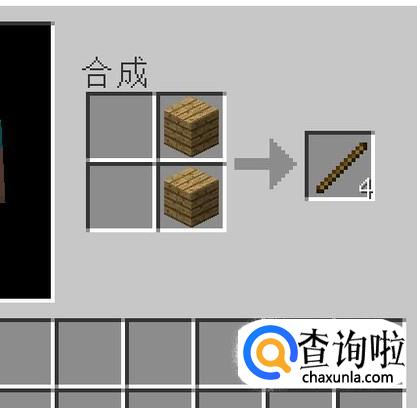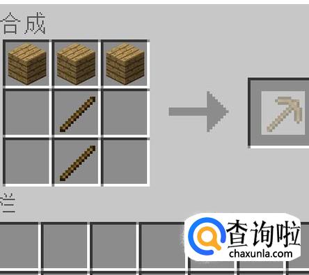 在工作台上,用3个木板,2个木棍,合成木镐,如图所示。
