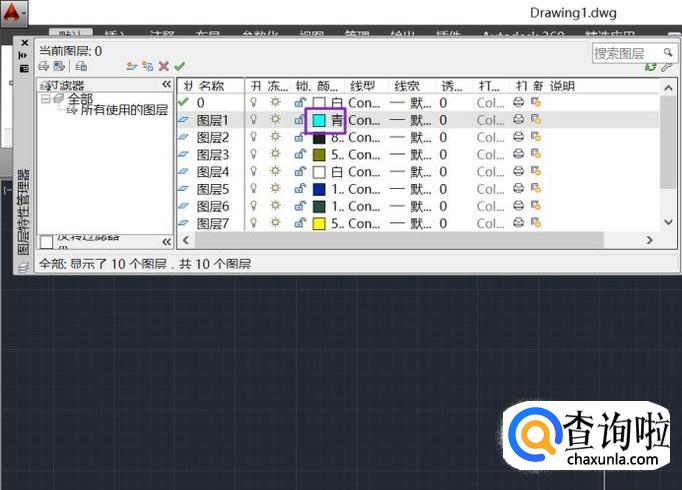 之后我们就可以看到图层1的颜色便变成青色了;