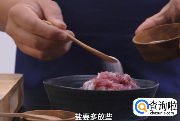 切好的食材全都放入碗中,倒入一些米酒、撒上盐和糖,盐要多放些,可以调出肉的鲜味。