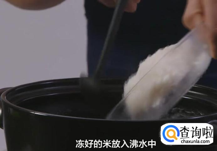 冻好的米放入沸水中。
