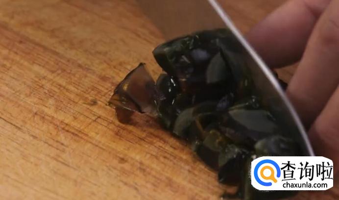 皮蛋切成小块。