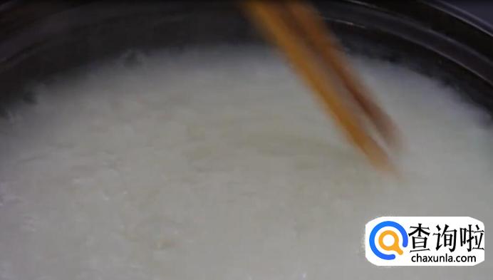 搅散后,熬住约20分钟,全程保持大火,不时搅拌,防止米粒沾底。
