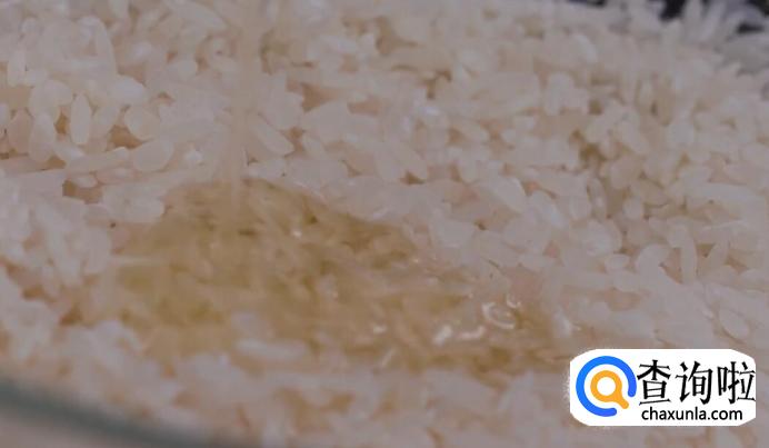 首先,在已淘干净的大米和香米里,倒一些花生油。