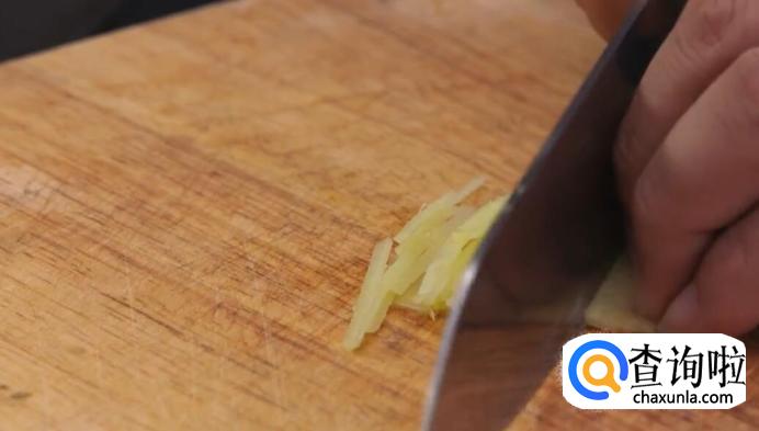 煮粥的同时,把生姜切成丝。