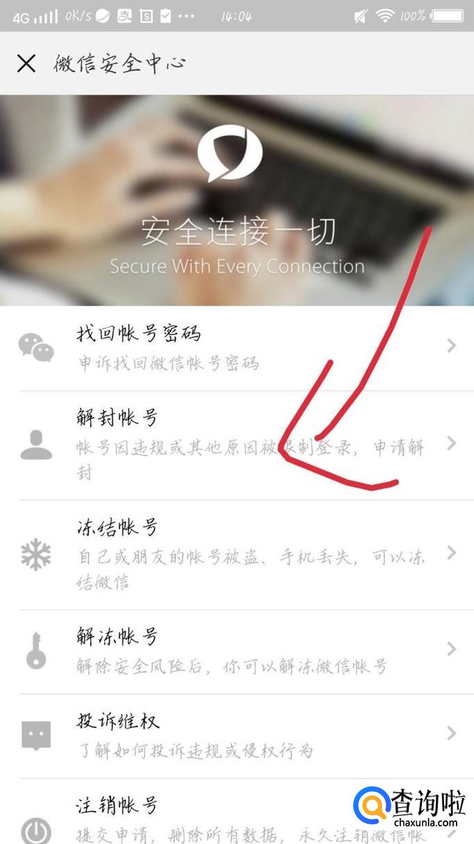 点击“微信安全中心”选项,如图1箭头所示。会出现一个新的界面,如图2所示。