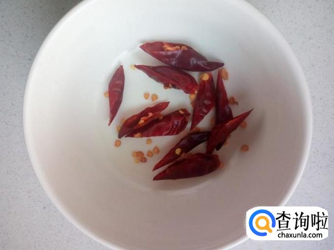 红干椒用水清洗干净,控干水分,斜刀切成段,备用。