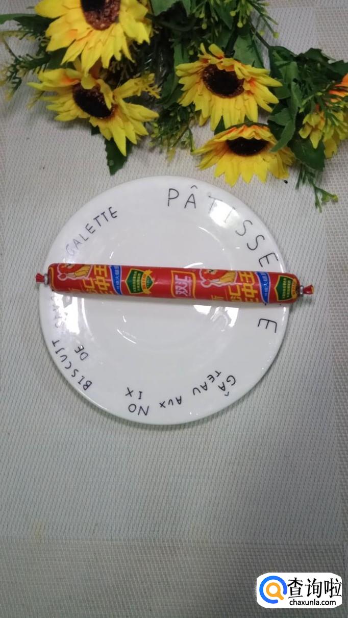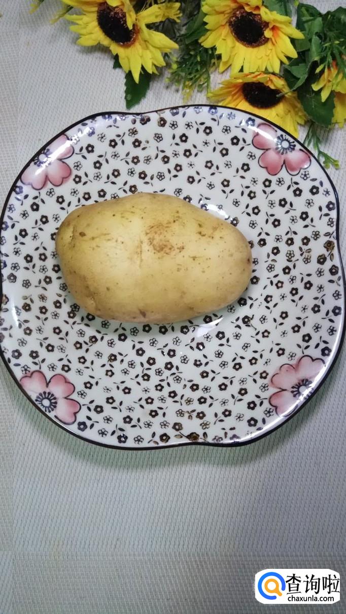 准备一块土豆,洗净备用;准备一块老豆腐,用清水冲一下,放在盘中备用;再准备一根香肠备用。