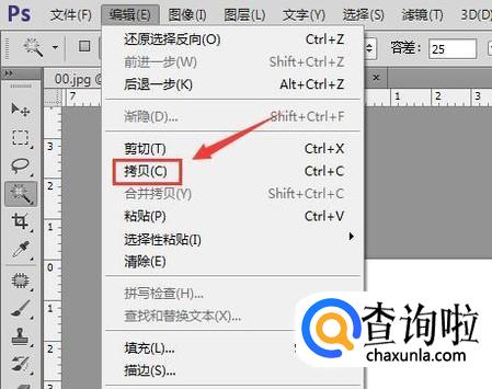 得到选区之后我们在编辑里找到拷贝选项,如图所示: