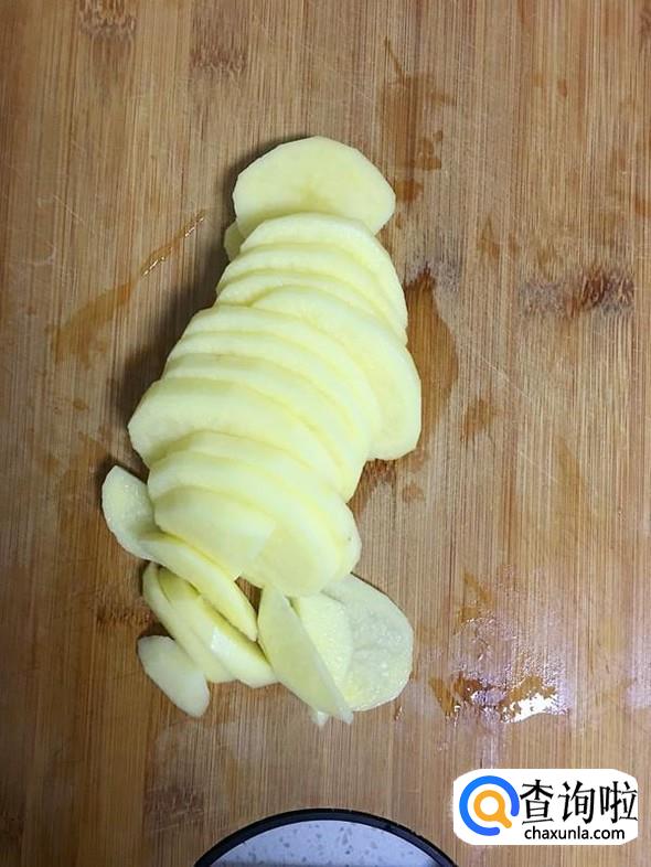 土豆清洗干净后,去皮切成薄片,这样蒸制的时候容易熟。