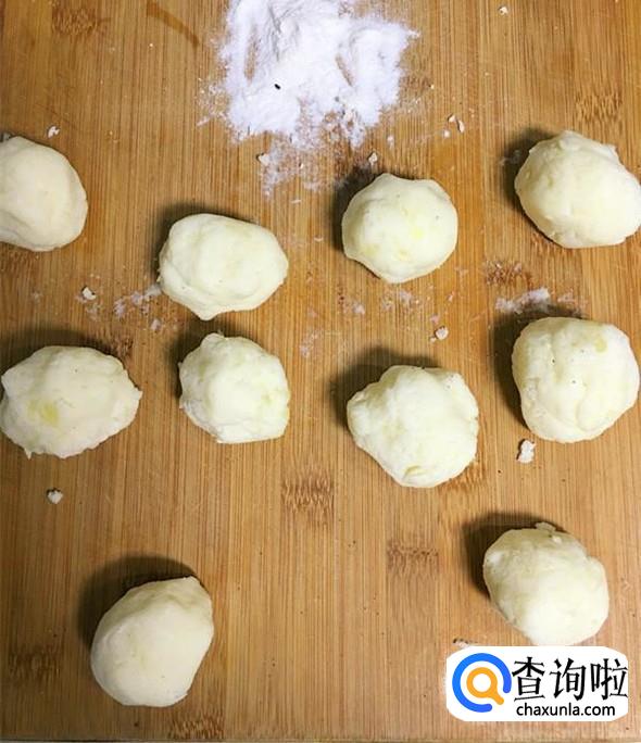取出处理好的土豆泥,揉匀成一个长条,然后分割成若干个小段。