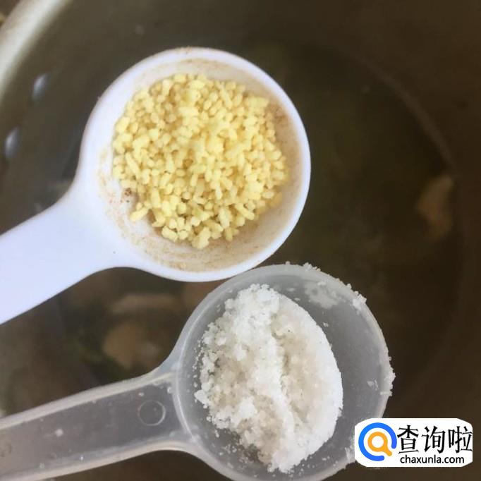 接着往锅中加入适量的盐巴和味精,小煮片刻就可以出锅了。