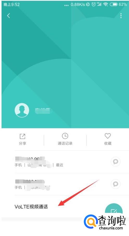 点击联系人的名字后,进入详情页,找到VoLTE视频通话的选项,并点击进入