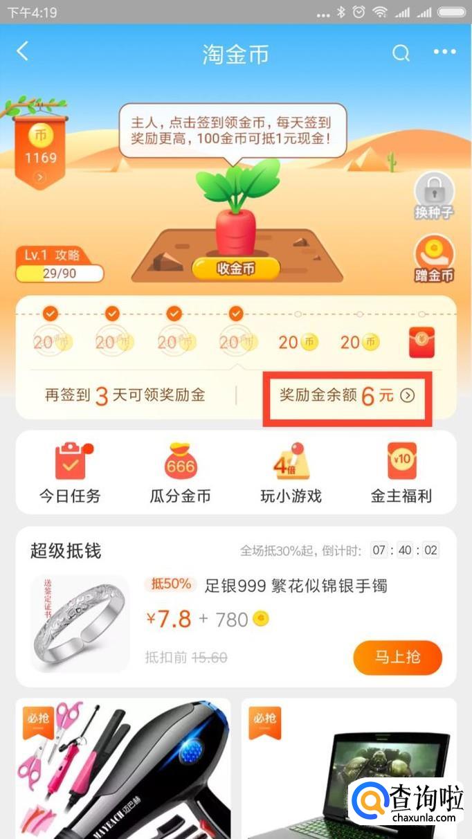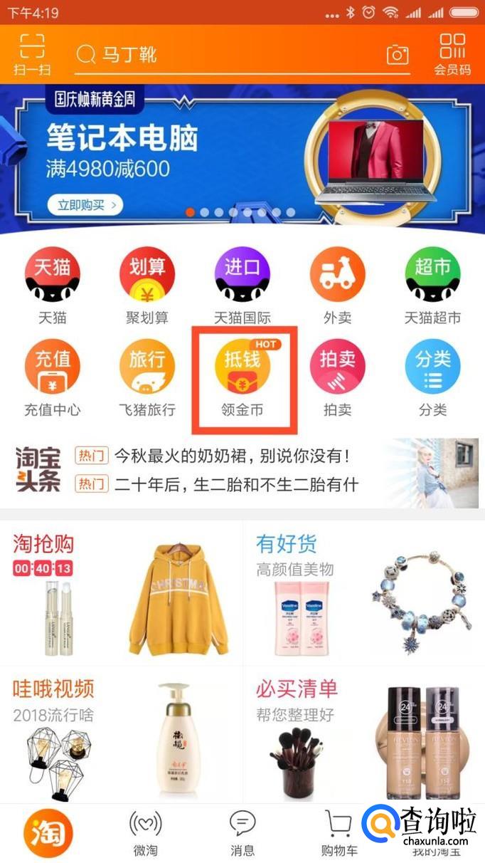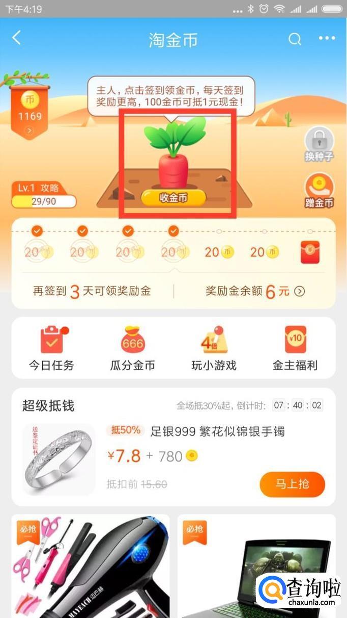 点开淘宝,然后在主界面上找到领金币这一个功能。