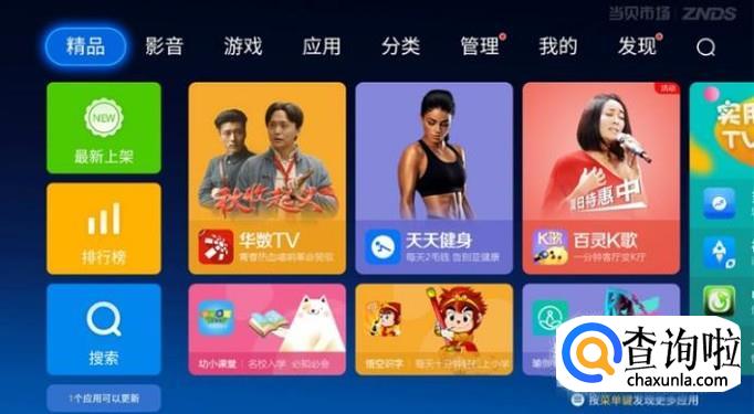 打开酷开电视的主页,选择(酷开应用圈),进入后选择左上推荐,接着就会看到左下角(搜索)功能,选择搜索。