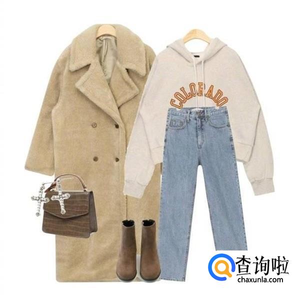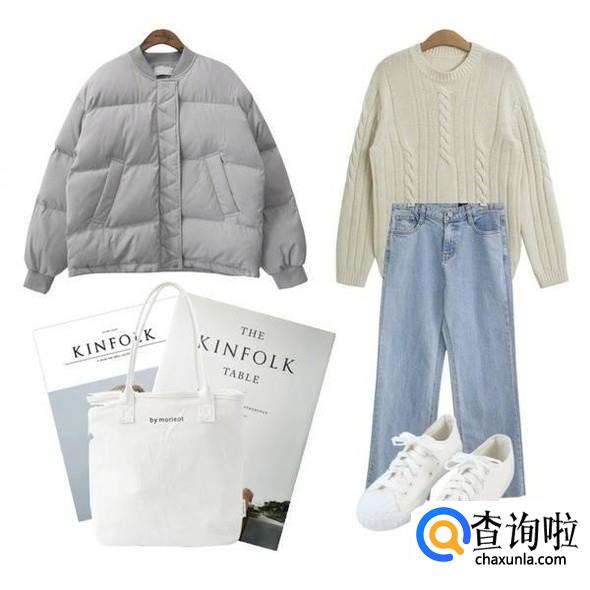 直筒浅色牛仔,加一个浅色毛衣,外面再穿一个短款羽绒服,当然不一定和图颜色一样,但一定不能太过鲜艳,下面穿一双小白鞋,一个清纯的你就出现了。