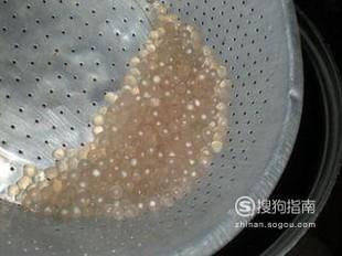 捞出后冷水冲洗,这样的西米露才不会粘附在一起,颗颗分离,十分漂亮。