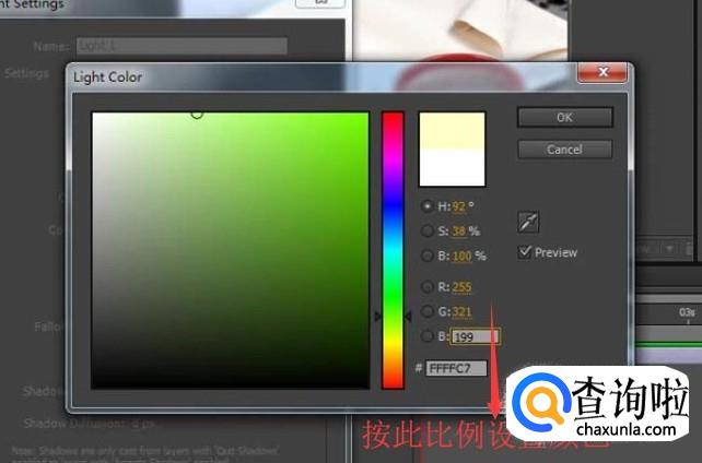 接下来在弹出的Light Color界面中设置如下图所示的颜色值
