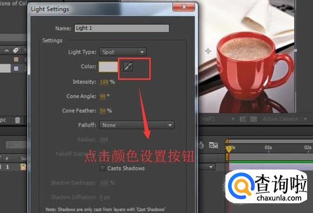 然后就会弹出Light Settings界面,这里先点击一下Color后面的笔状按钮,如下图所示