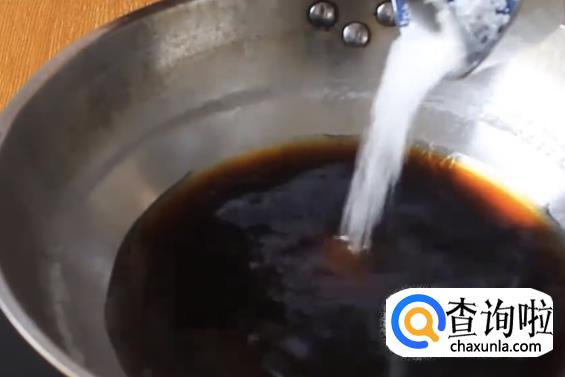 接着再起锅,倒入清水、生抽、少许白糖,搅拌一下。这一步是做腌制辣椒的酱汁。