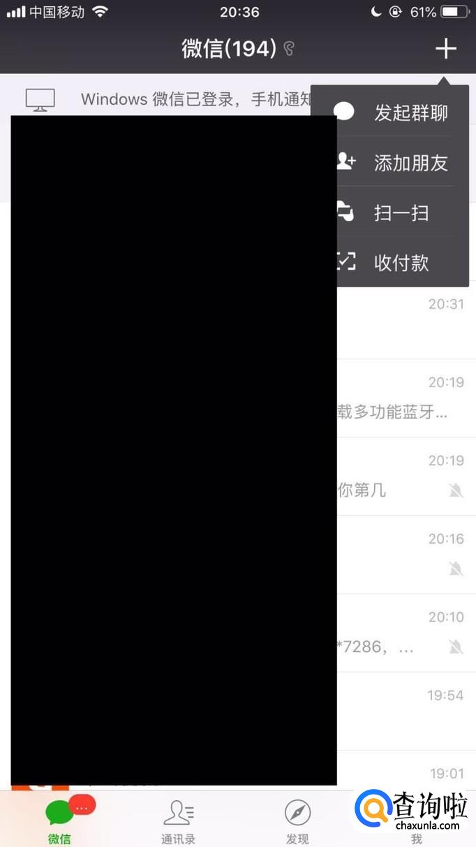首先点击微信右上方的加号键,如下图所示。