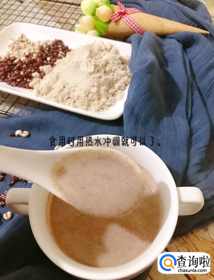 薏米红豆粉就做好了,大家平常要吃喝的时候只要在杯子中加上几勺,接着倒入开水冲泡一下就能够正常服用了。