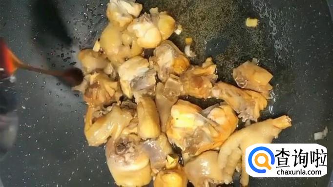 锅中下入鸡块,添加蚝油、海鲜酱油调味