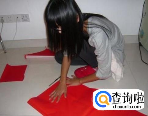 把一大块红纸对折几次,然后裁成相同大小的小块,小朋友用剪刀时,一定要用儿童安全小剪刀,不要伤到小手。