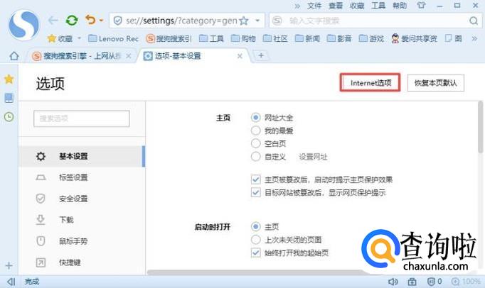 弹出的界面,我们点击Internet选项;
