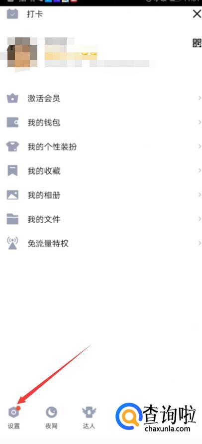 首先打开手机QQ,点击个人头像,再点击设置。
