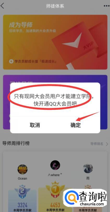 点击学院帽标识后,可以看到有两种方式可以点亮:一是自己成为导师,招收一名徒弟,或者自己可以找一名导师,在同一个大会员下面,就可以点亮了。
