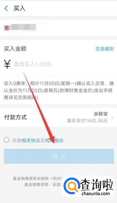 进入之后,输入买入金额,勾选“同意”,进行支付即可,如图所示。