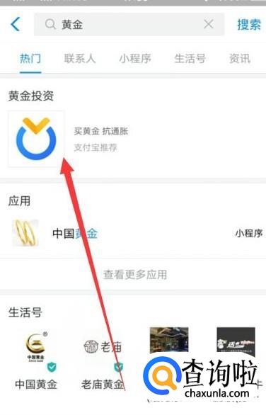 在搜索结果页面,点击“黄金投资”,如图所示。