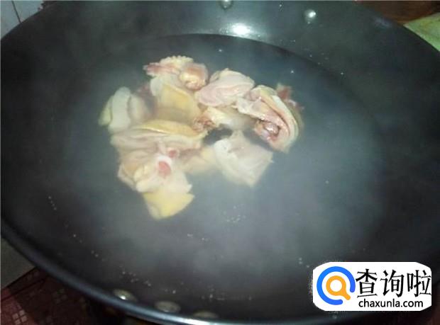 鸡肉清洗干净,然后放到开水中烫一下水,然后捞起来备用。