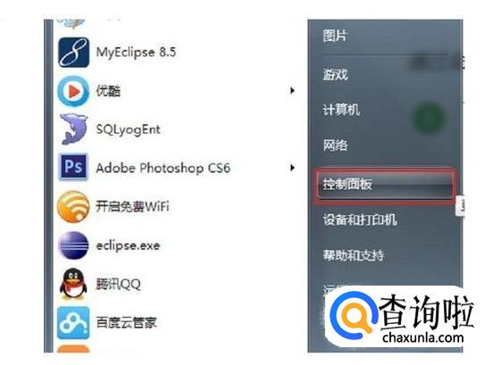 鼠标点击屏幕左下角开始菜单,找到控制面板选项,点击进入控制面板。
