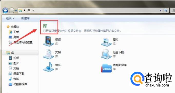 在电脑中打开“库”文件夹。