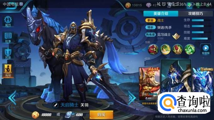 关于的职业是战士,特长是突进和先手,生存指数,攻击指数,技能指数都是相当的高,但是想要玩好这款英雄的难度也是很高的!他的主要技能就是单刀赴会,青龙偃月,刀锋铁骑。这些小编就不在详细讲解啦,毕竟是有一定经验的人才会来查这个问题……