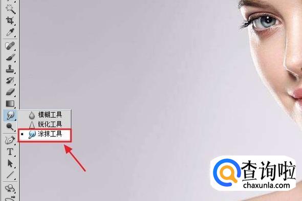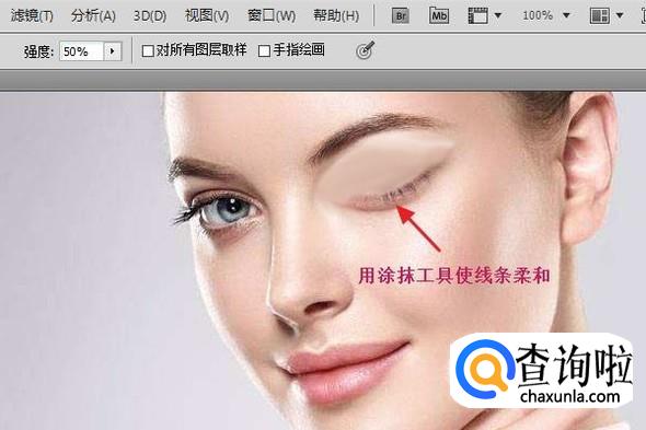如果感觉使用仿制图章处理以后的效果不够圆润,那么点击左侧工具的“涂抹工具”对其进行涂抹,以达到柔和的效果,如图二;